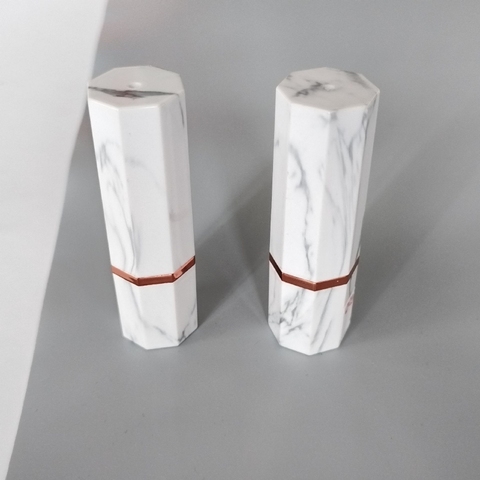 Tube de rouge à lèvres imprimé marbre blanc noir octogonal Offre Spéciale Logo personnalisé conteneur de rouge à lèvres en plastique vide cosmétique